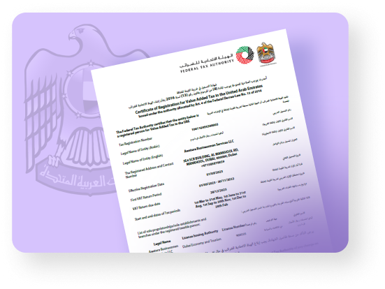 - Подготовка и подача запроса на регистрацию — наши специалисты подготовят все необходимые документы и отправят их через портал FTA для получения номера налогоплательщика (TRN).